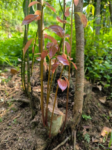5 ~ 6 new tender trees are growing from where the tree was harvested